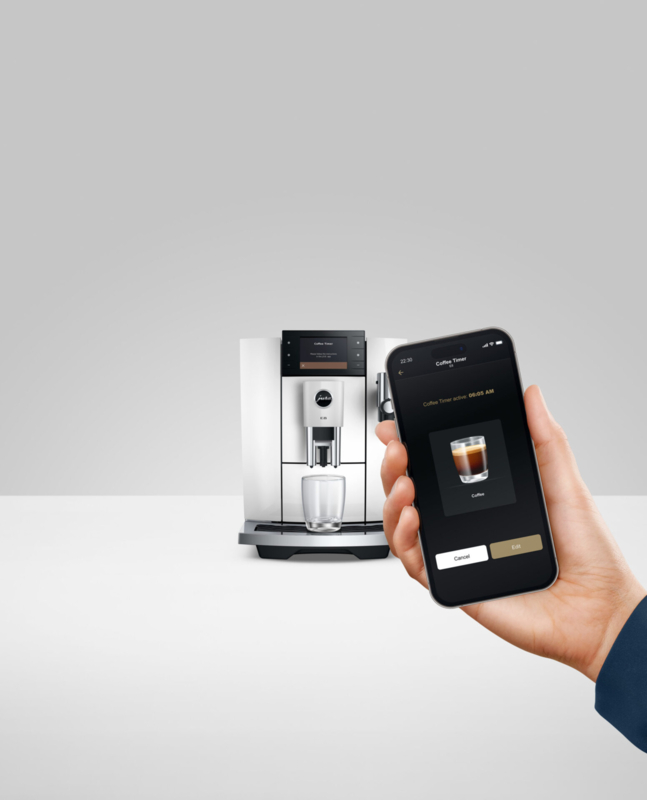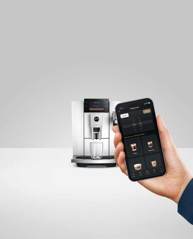 De E8 fascineert ook met intelligente technologie zoals de Coffee Timer. Hiermee kunt u uw ochtendkoffie programmeren via de app J.O.E.. en genieten van vers gemalen en bereide koffie zodra u opstaat.