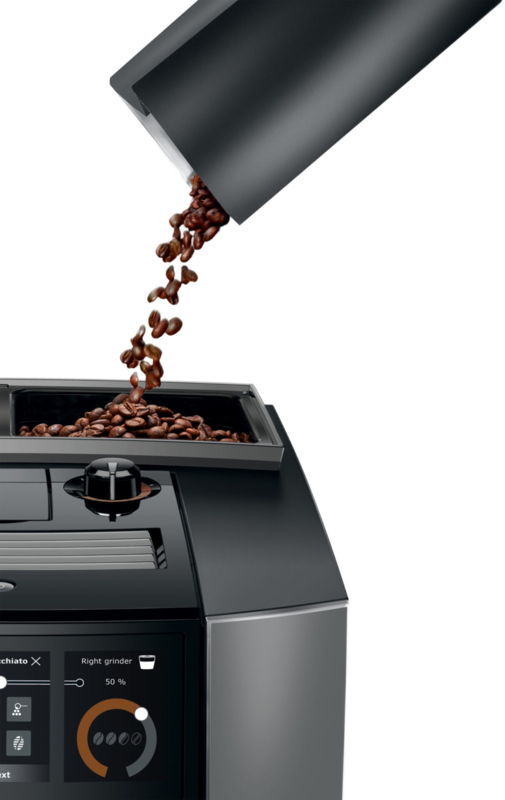 De J10 Twin is uitgerust met twee professionele aroma-molens (P.A.G.3+). Hierdoor gebruik je twee verschillende soorten koffiebonen tegelijk, bijvoorbeeld reguliere en cafeïnevrije bonen, of lichte en donkere branding. De machine schakelt automatisch tussen de molens op basis van de gekozen koffiespecialiteit.